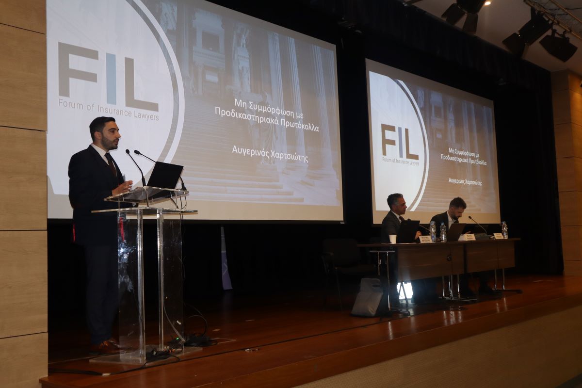 Θέμα της ημερίδας, την οποία παρακολούθησαν δεκάδες στελέχη ασφαλιστικών εταιρειών κυρίως αρμόδια για θέματα απαιτήσεων, ήταν οι Νέοι Κανονισμοί Πολιτικής Δικονομίας (Θεσμοί) που μπαίνουν σε εφαρμογή από τον ερχόμενο Σεπτέμβριο.