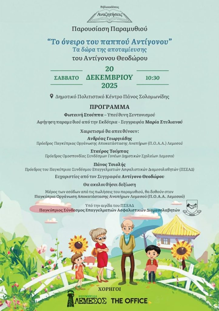 7. Παρουσίαση Παραμυθιού με Ασφαλιστική Θεματολογία: “Το όνειρο του παππού Αντίγονου”
